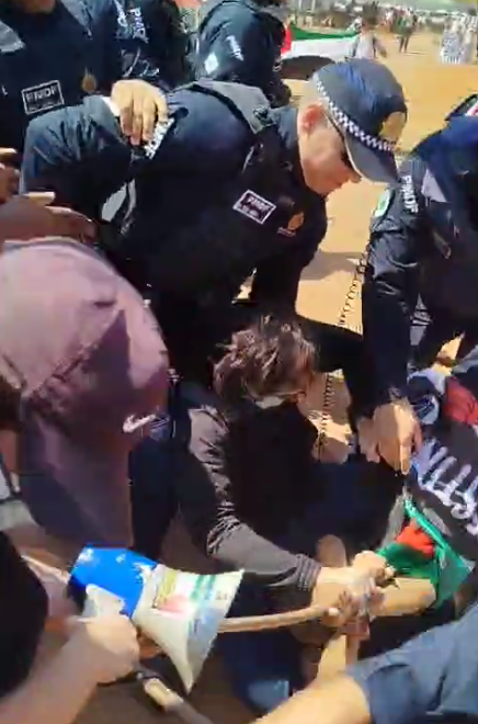 Não satisfeita com a repressão física, a Polícia Militar do DF procedeu ainda à prisão violenta de três manifestantes, sob a falsa alegação de porte de arma perfurante, fato jamais comprovado. Os detidos foram acompanhados por dois advogados — entre eles o Dr. Tiago Guilherme, reconhecido defensor da causa palestina — e, após arbitrária condução à delegacia, foram devidamente liberados.